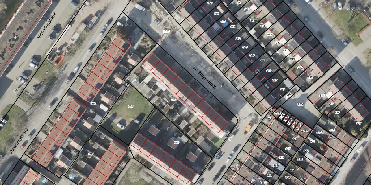 Het perceel waarop de Bruynstraat 9 staat heeft een oppervlakte van 1600 m². Dit is een zeer groot perceel. De perceeloppervlakte wordt geregistreerd door het Kadaster. Gedetailleerde informatie over de maten van dit perceel kunt u vinden in het rapport Kadastrale kaart met maatvoering van de Bruynstraat 9.