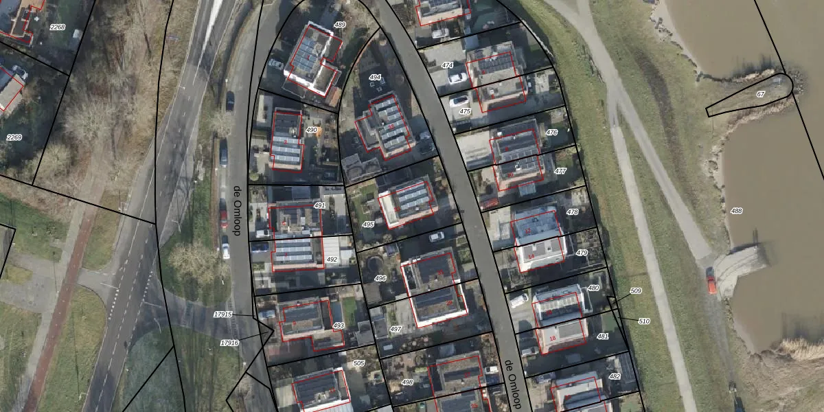 Gebruik de zoekbalk of klik op een perceel voor informatie over de adressen binnen dit perceel.