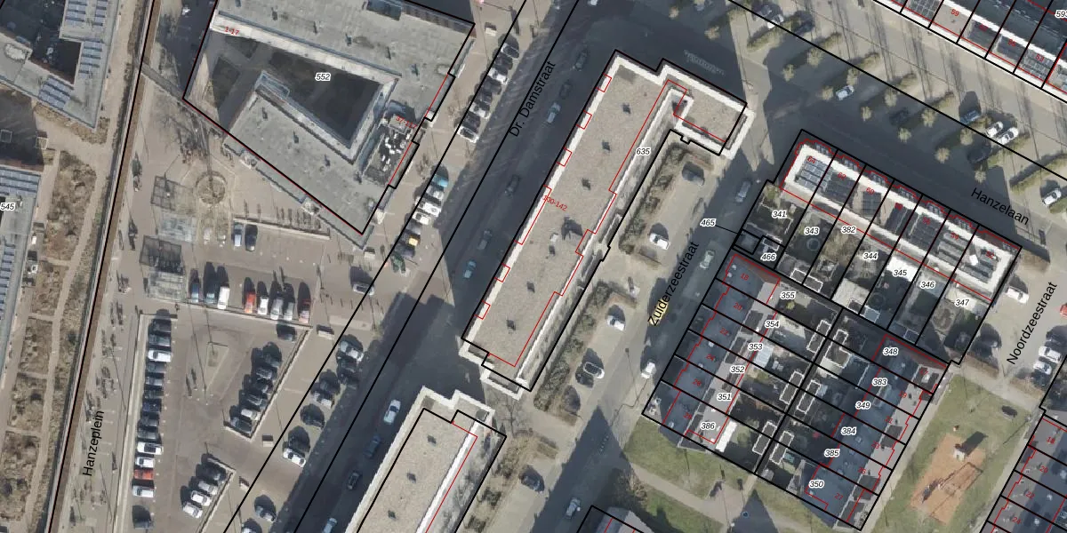Het perceel waarop Dr. Damstraat 120 staat heeft een oppervlakte van 1155 m². Dit is een zeer groot perceel. De perceeloppervlakte wordt geregistreerd door het Kadaster. Gedetailleerde informatie over de maten van dit perceel kunt u vinden in het rapport Kadastrale kaart met maatvoering van Dr. Damstraat 120.