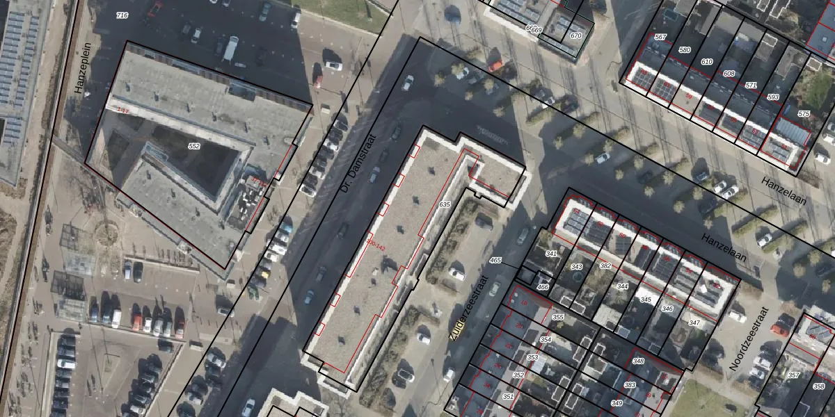 Het perceel waarop Dr. Damstraat 132 staat heeft een oppervlakte van 1155 m². Dit is een zeer groot perceel. De perceeloppervlakte wordt geregistreerd door het Kadaster. Gedetailleerde informatie over de maten van dit perceel kunt u vinden in het rapport Kadastrale kaart met maatvoering van Dr. Damstraat 132.