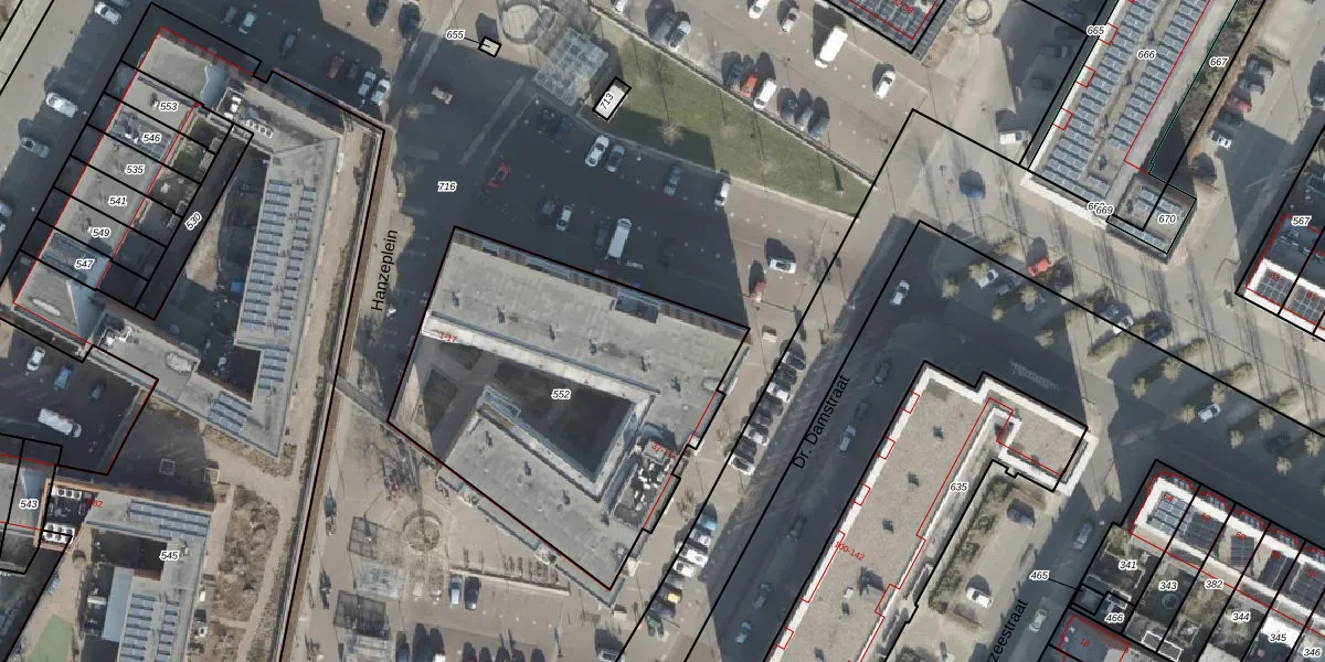 Het perceel waarop Dr. Damstraat 47 staat heeft een oppervlakte van 1695 m². Dit is een zeer groot perceel. De perceeloppervlakte wordt geregistreerd door het Kadaster. Gedetailleerde informatie over de maten van dit perceel kunt u vinden in het rapport Kadastrale kaart met maatvoering van Dr. Damstraat 47.