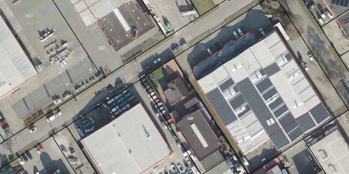 Het perceel waarop Ertsstraat 8-A staat heeft een oppervlakte van 1473 m². Dit is een zeer groot perceel. De perceeloppervlakte wordt geregistreerd door het Kadaster. Gedetailleerde informatie over de maten van dit perceel kunt u vinden in het rapport Kadastrale kaart met maatvoering van Ertsstraat 8-A.