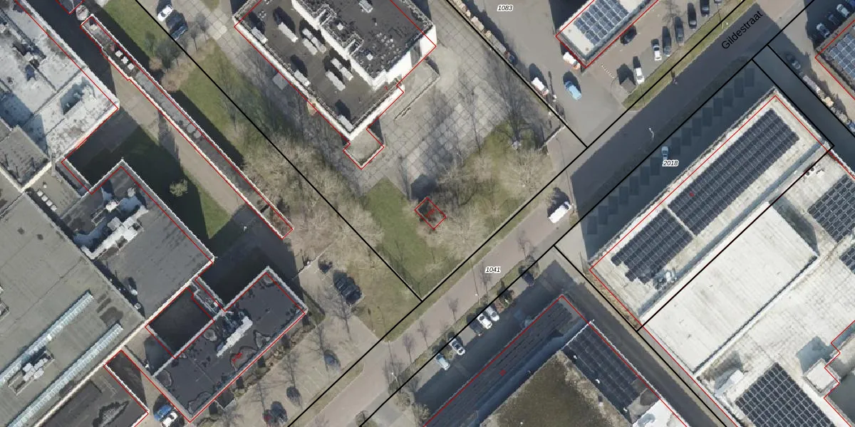 Het perceel waarop Gildestraat 7-TR staat heeft een oppervlakte van 1,0 ha. Dit is een zeer groot perceel. De perceeloppervlakte wordt geregistreerd door het Kadaster. Gedetailleerde informatie over de maten van dit perceel kunt u vinden in het rapport Kadastrale kaart met maatvoering van Gildestraat 7-TR.