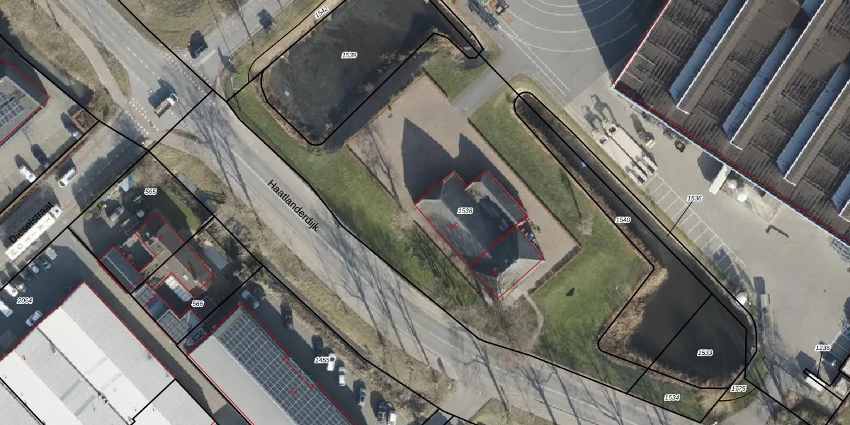 Het perceel waarop Haatlanderdijk 29-A staat heeft een oppervlakte van 3594 m². Dit is een zeer groot perceel. De perceeloppervlakte wordt geregistreerd door het Kadaster. Gedetailleerde informatie over de maten van dit perceel kunt u vinden in het rapport Kadastrale kaart met maatvoering van Haatlanderdijk 29-A.