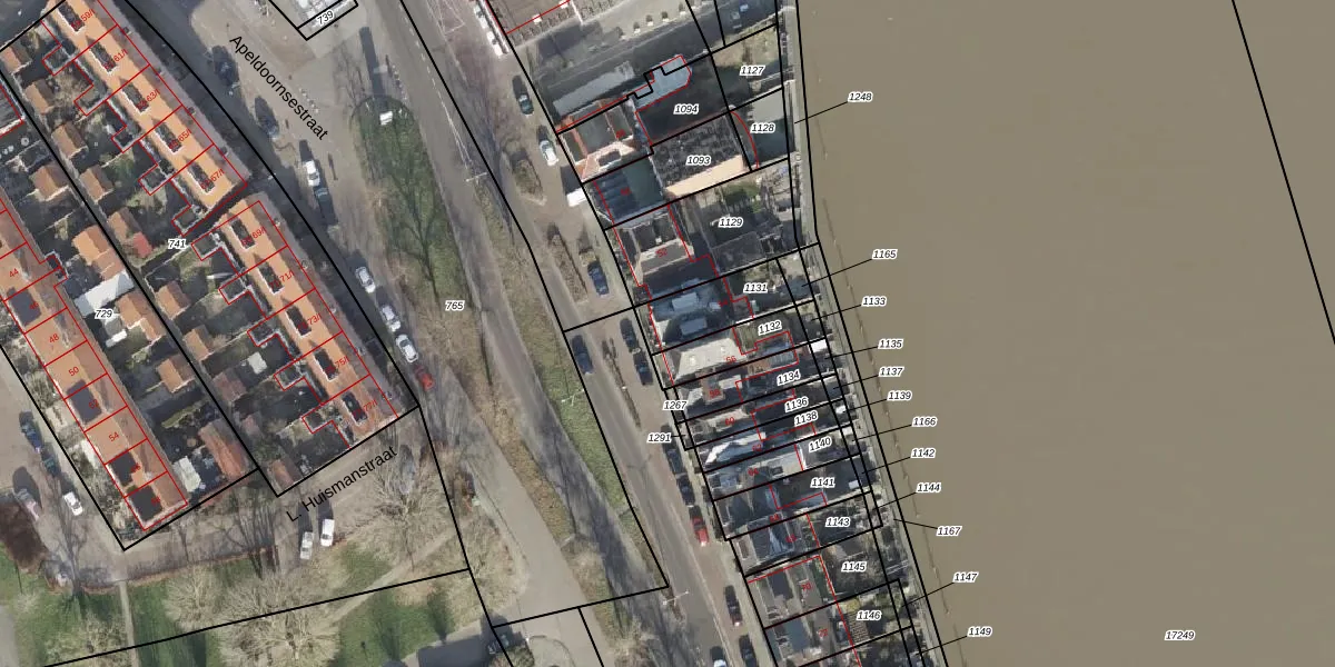 Het perceel waarop IJsseldijk 54 staat heeft een oppervlakte van 160 m². Dit is een middelgroot perceel. De perceeloppervlakte wordt geregistreerd door het Kadaster. Gedetailleerde informatie over de maten van dit perceel kunt u vinden in het rapport Kadastrale kaart met maatvoering van IJsseldijk 54.