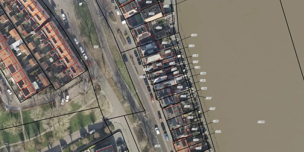 Het perceel waarop IJsseldijk 60 staat heeft een oppervlakte van 90 m². Dit is een klein perceel. De perceeloppervlakte wordt geregistreerd door het Kadaster. Gedetailleerde informatie over de maten van dit perceel kunt u vinden in het rapport Kadastrale kaart met maatvoering van IJsseldijk 60.