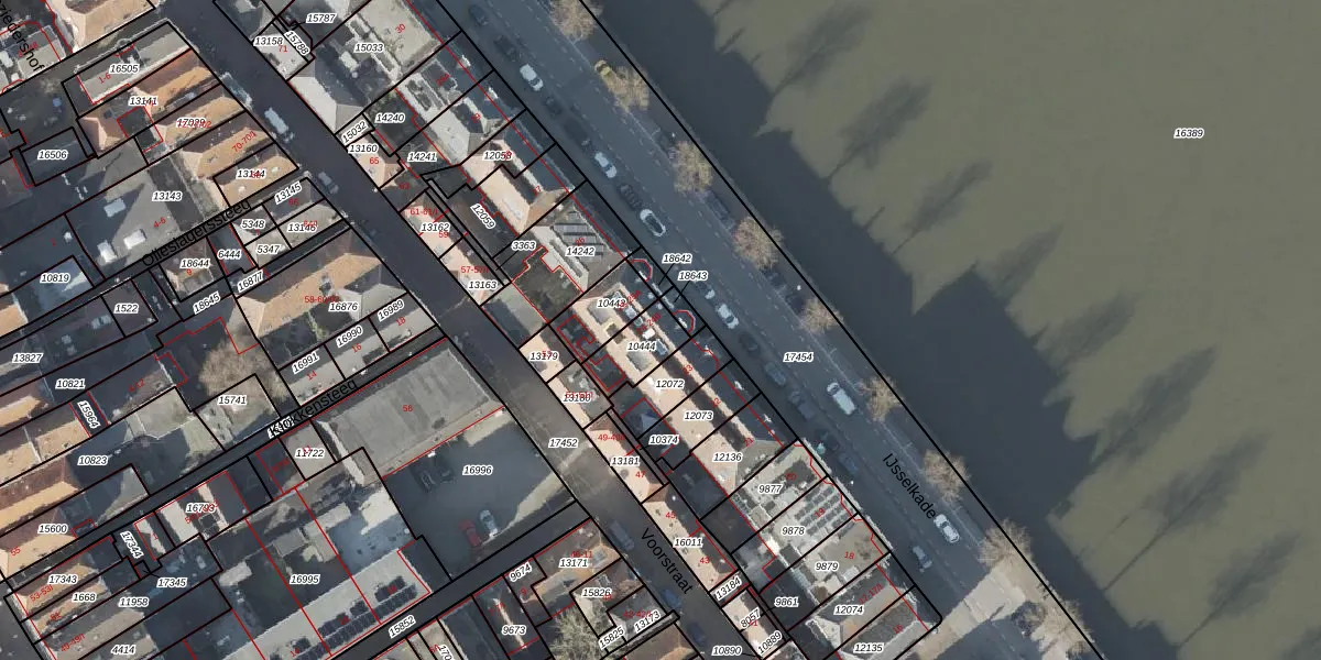 Het perceel waarop IJsselkade 24 staat heeft een oppervlakte van 114 m². Dit is een middelgroot perceel. De perceeloppervlakte wordt geregistreerd door het Kadaster. Gedetailleerde informatie over de maten van dit perceel kunt u vinden in het rapport Kadastrale kaart met maatvoering van IJsselkade 24.