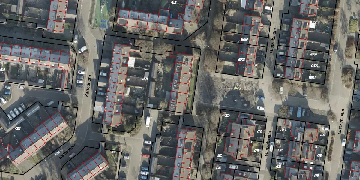 Kattedoorn 48 is gelegen op kadastraal perceel KPN01W433. Deze kadastrale aanduiding is uniek en wordt gebruikt door het Kadaster om eigendomsrechten en andere zakelijke rechten vast te leggen. Het perceel maakt onderdeel uit van de kadastrale gemeente Kampen.