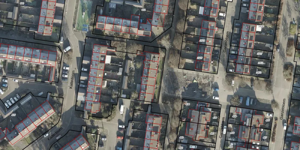 Het perceel waarop Kattedoorn 50 staat heeft een oppervlakte van 2229 m². Dit is een zeer groot perceel. De perceeloppervlakte wordt geregistreerd door het Kadaster. Gedetailleerde informatie over de maten van dit perceel kunt u vinden in het rapport Kadastrale kaart met maatvoering van Kattedoorn 50.