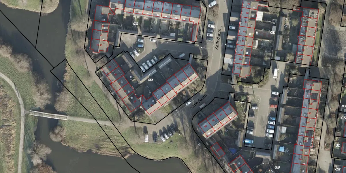 Kattedoorn 75 is gelegen op kadastraal perceel KPN01W435. Deze kadastrale aanduiding is uniek en wordt gebruikt door het Kadaster om eigendomsrechten en andere zakelijke rechten vast te leggen. Het perceel maakt onderdeel uit van de kadastrale gemeente Kampen.