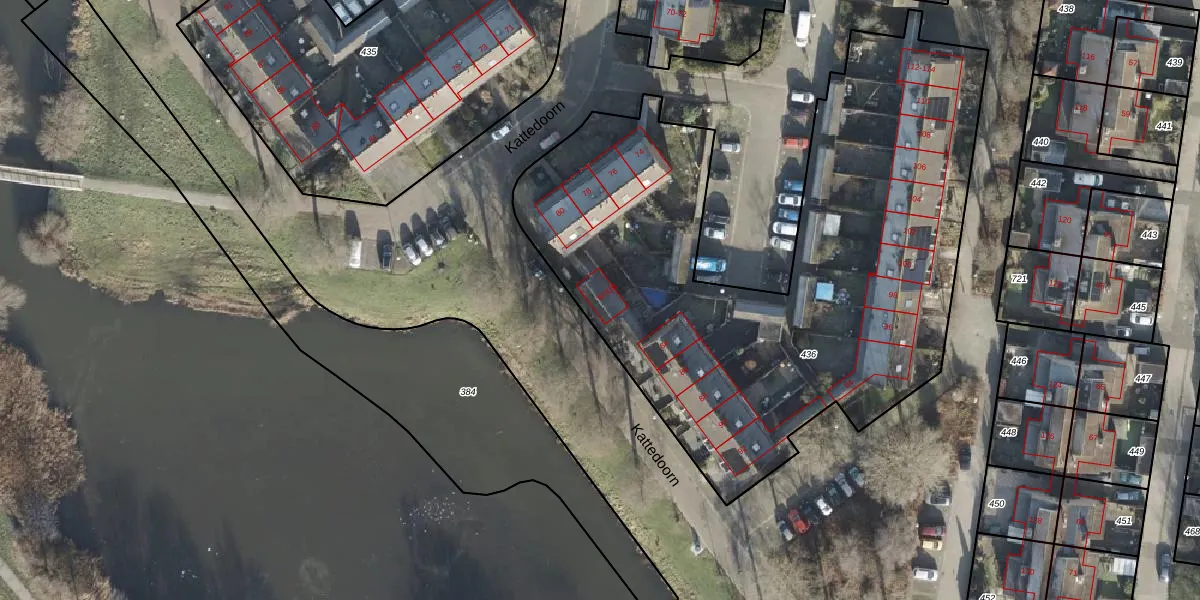 Kattedoorn 82-GR is gelegen op kadastraal perceel KPN01W436. Deze kadastrale aanduiding is uniek en wordt gebruikt door het Kadaster om eigendomsrechten en andere zakelijke rechten vast te leggen. Het perceel maakt onderdeel uit van de kadastrale gemeente Kampen.