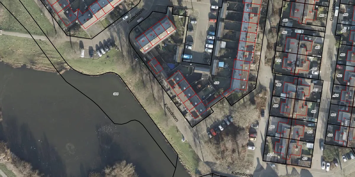 Het perceel waarop Kattedoorn 86 staat heeft een oppervlakte van 3248 m². Dit is een zeer groot perceel. De perceeloppervlakte wordt geregistreerd door het Kadaster. Gedetailleerde informatie over de maten van dit perceel kunt u vinden in het rapport Kadastrale kaart met maatvoering van Kattedoorn 86.