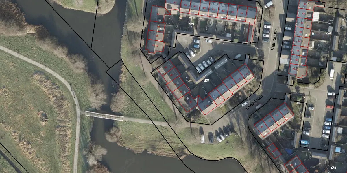 Het perceel waarop Kattedoorn 87 staat heeft een oppervlakte van 1692 m². Dit is een zeer groot perceel. De perceeloppervlakte wordt geregistreerd door het Kadaster. Gedetailleerde informatie over de maten van dit perceel kunt u vinden in het rapport Kadastrale kaart met maatvoering van Kattedoorn 87.