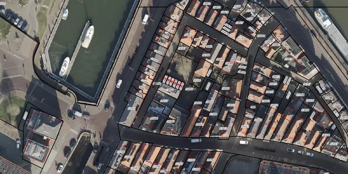 Het adres is gelegen op perceel 16414 in de sectie F en de kadastrale gemeente Kampen. De kadastrale aanduiding is aldus KPN01-F-16414. De gemiddelde perceelgrootte in Kampen is 4808,05 m². Dit perceel is kleiner: de perceeloppervlakte bedraagt 10 m². Het kleinste perceel in de kadastrale gemeente is 0 m² groot. De grootste perceeloppervlakte is 9,58 km². Dit is het enige adres dat aanwezig is op het perceel. In de Basisregistratie Kadaster (BRK) werden de grenzen van het perceel geregistreerd op 24-07-2002.