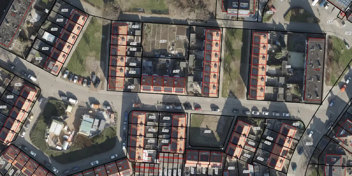 Het perceel waarop Leeuwerikstraat 25 staat heeft een oppervlakte van 1265 m². Dit is een zeer groot perceel. De perceeloppervlakte wordt geregistreerd door het Kadaster. Gedetailleerde informatie over de maten van dit perceel kunt u vinden in het rapport Kadastrale kaart met maatvoering van Leeuwerikstraat 25.