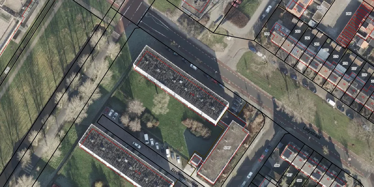 Het perceel waarop Lelystraat 21 staat heeft een oppervlakte van 1,4 ha. Dit is een zeer groot perceel. De perceeloppervlakte wordt geregistreerd door het Kadaster. Gedetailleerde informatie over de maten van dit perceel kunt u vinden in het rapport Kadastrale kaart met maatvoering van Lelystraat 21.