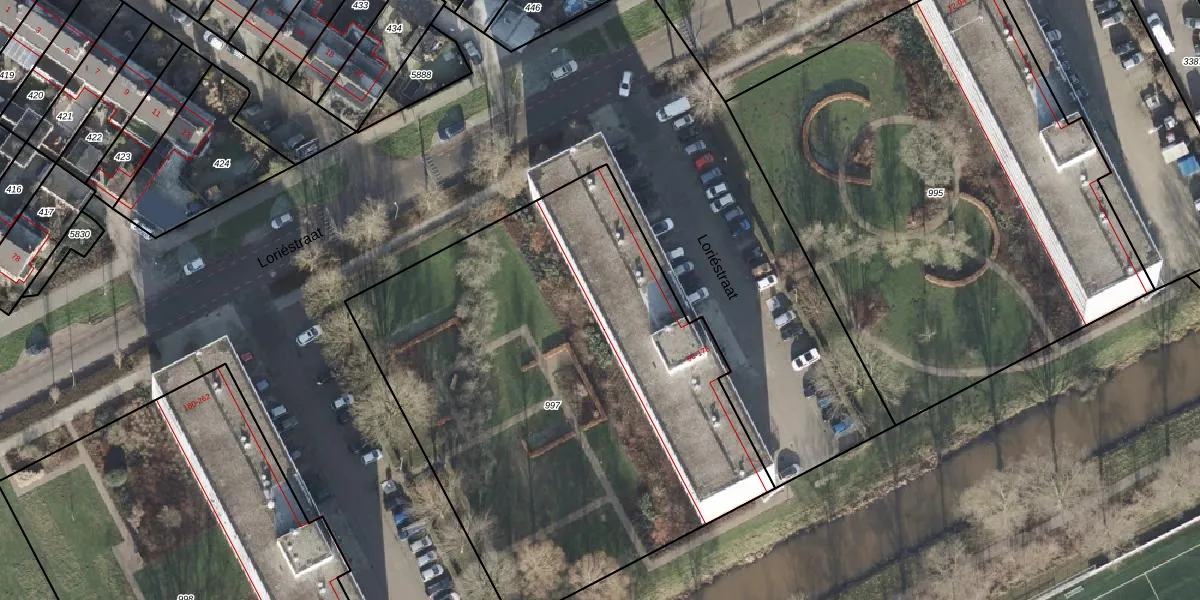 Loriéstraat 150 is gelegen op kadastraal perceel KPN01P997. Deze kadastrale aanduiding is uniek en wordt gebruikt door het Kadaster om eigendomsrechten en andere zakelijke rechten vast te leggen. Het perceel maakt onderdeel uit van de kadastrale gemeente Kampen.