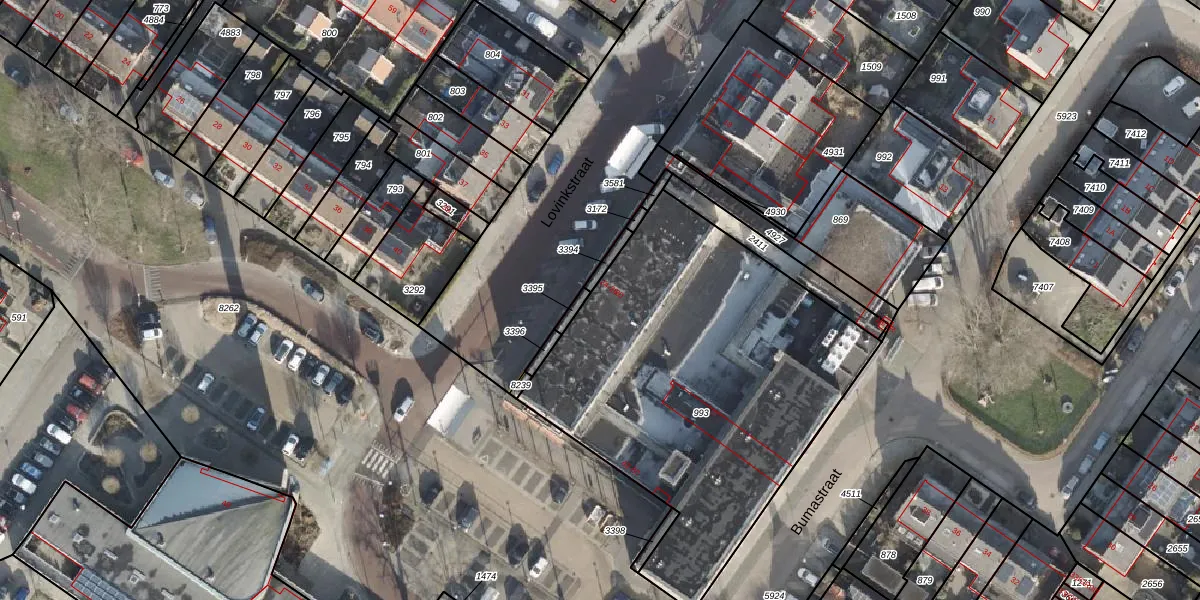 Het perceel waarop Lovinkstraat 26 staat heeft een oppervlakte van 2033 m². Dit is een zeer groot perceel. De perceeloppervlakte wordt geregistreerd door het Kadaster. Gedetailleerde informatie over de maten van dit perceel kunt u vinden in het rapport Kadastrale kaart met maatvoering van Lovinkstraat 26.