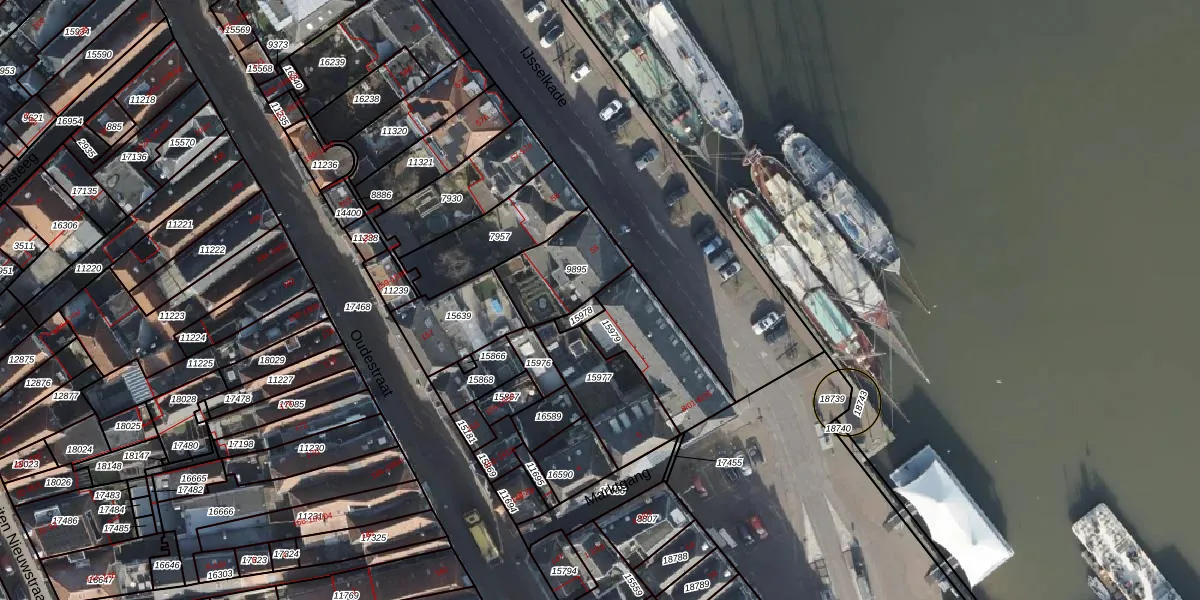 Het adres is gelegen op perceel 15979 in de sectie F en de kadastrale gemeente Kampen. De kadastrale aanduiding is aldus KPN01-F-15979. Het perceel is 295 m² groot. Dat is kleiner dan de gemiddelde perceeloppervlakte in Kampen, dat op 4806,93 m² ligt. Het kleinste perceel in de kadastrale gemeente is 0 m² groot. De grootste perceeloppervlakte is 9,58 km². Er zijn 29 adressen aanwezig op het perceel. De huidige grenzen van het perceel zijn digitaal in de Basisregistratie Kadaster (BRK) geregistreerd op 04-11-2003.