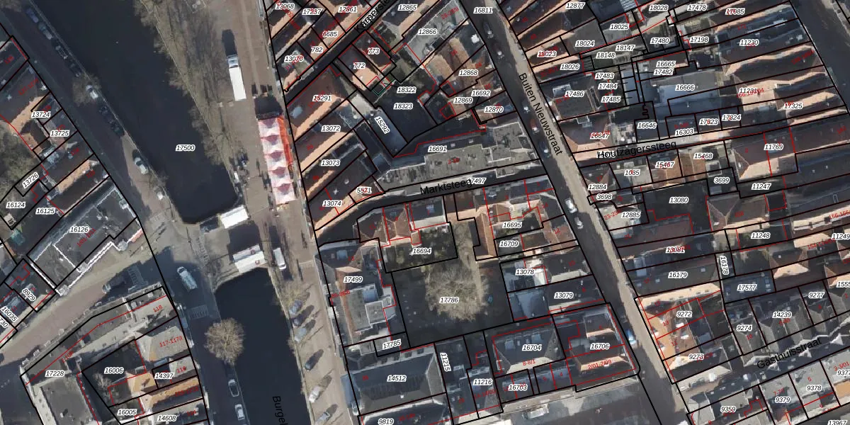 Het perceel waarop Marktsteeg 7 staat heeft een oppervlakte van 281 m². Dit is een middelgroot perceel. De perceeloppervlakte wordt geregistreerd door het Kadaster. Gedetailleerde informatie over de maten van dit perceel kunt u vinden in het rapport Kadastrale kaart met maatvoering van Marktsteeg 7.