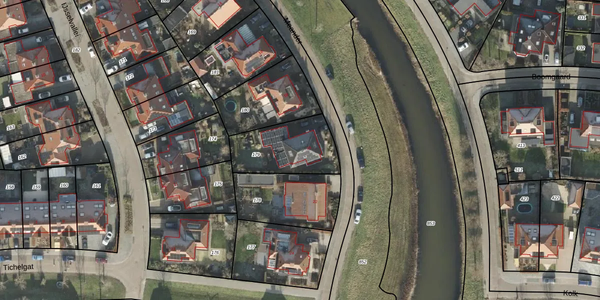 Gebruik de zoekbalk of klik op een perceel voor informatie over de adressen binnen dit perceel.