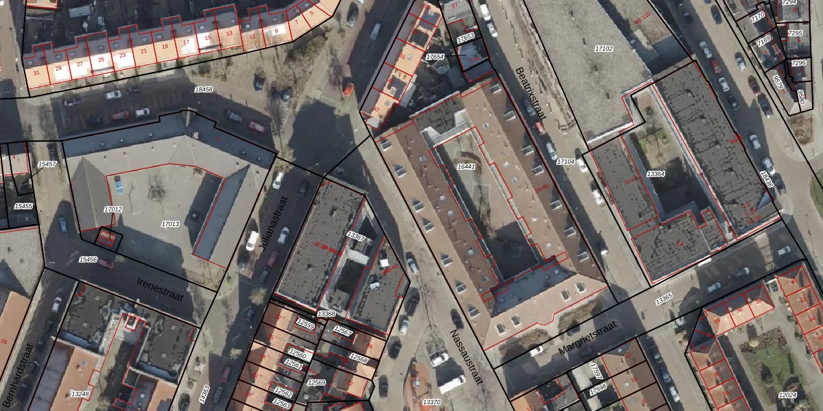 Het perceel waarop Nassaustraat 25 staat heeft een oppervlakte van 2700 m². Dit is een zeer groot perceel. De perceeloppervlakte wordt geregistreerd door het Kadaster. Gedetailleerde informatie over de maten van dit perceel kunt u vinden in het rapport Kadastrale kaart met maatvoering van Nassaustraat 25.