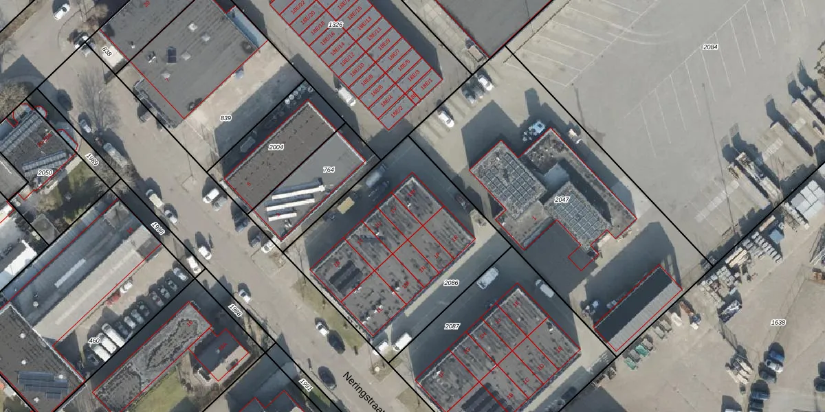 Het perceel waarop Neringstraat 1-W staat heeft een oppervlakte van 1545 m². Dit is een zeer groot perceel. De perceeloppervlakte wordt geregistreerd door het Kadaster. Gedetailleerde informatie over de maten van dit perceel kunt u vinden in het rapport Kadastrale kaart met maatvoering van Neringstraat 1-W.