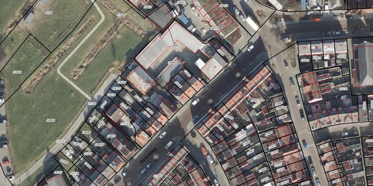 Het perceel waarop Noordweg 101 staat heeft een oppervlakte van 75 m². Dit is een klein perceel. De perceeloppervlakte wordt geregistreerd door het Kadaster. Gedetailleerde informatie over de maten van dit perceel kunt u vinden in het rapport Kadastrale kaart met maatvoering van Noordweg 101.