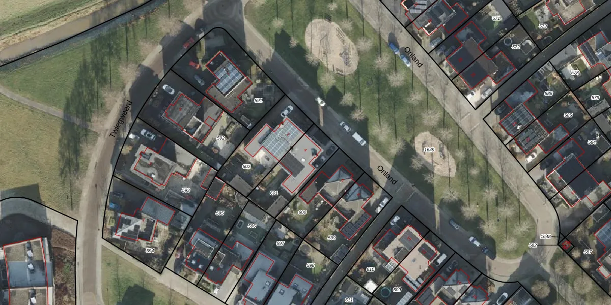 Gebruik de zoekbalk of klik op een perceel voor informatie over de adressen binnen dit perceel.