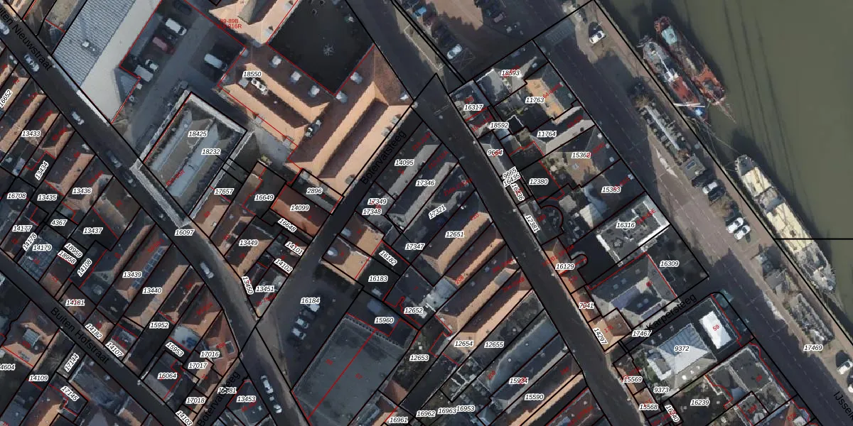 Het adres is gelegen op perceel 17321 in de sectie F en de kadastrale gemeente Kampen. De kadastrale aanduiding is aldus KPN01-F-17321. Het perceel is kleiner dan gemiddeld in Kampen. Het perceel is 158 m² groot, terwijl het gemiddelde ligt op 4806,93 m². De grootste perceeloppervlakte in de kadastrale gemeente is 9,58 km². De kleinste oppervlakte bedraagt 0 m². Op het perceel zijn 2 adressen aanwezig. De huidige grenzen van het perceel zijn digitaal in de Basisregistratie Kadaster (BRK) geregistreerd op 04-11-2003.