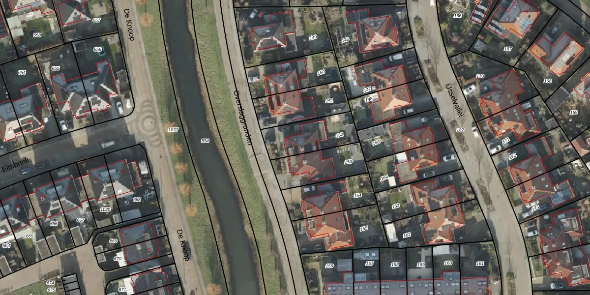 Gebruik de zoekbalk of klik op een perceel voor informatie over de adressen binnen dit perceel.