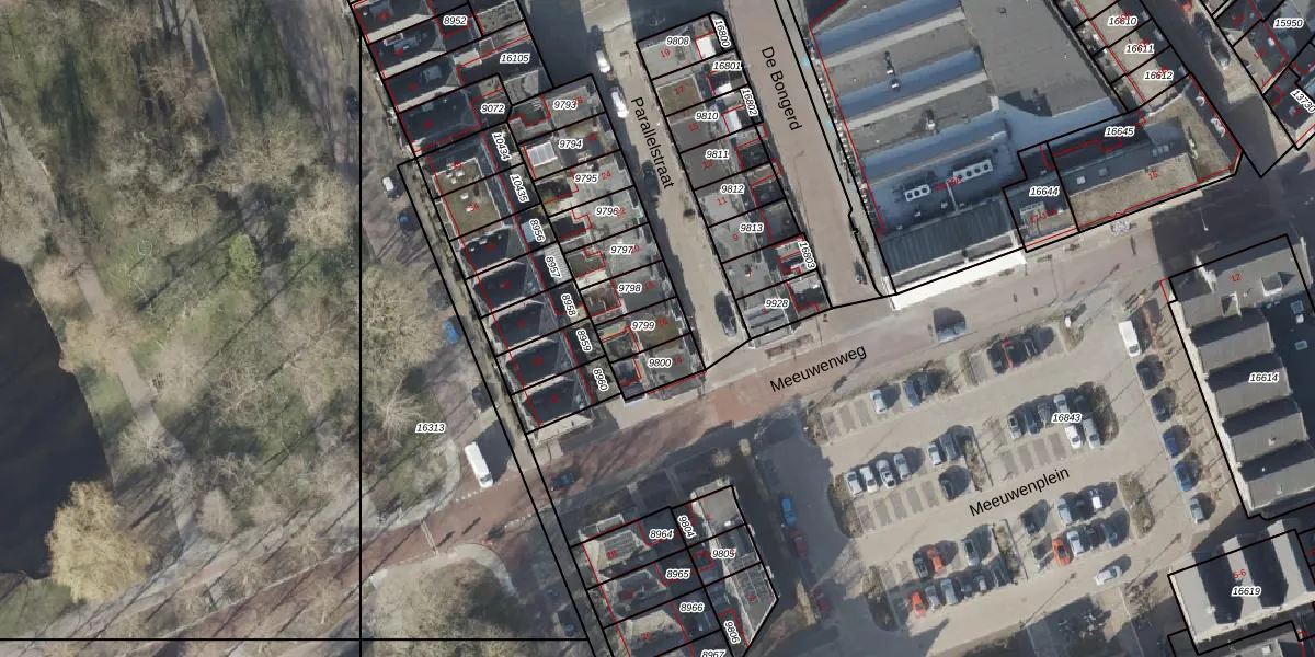 Het perceel waarop Parallelstraat 16 staat heeft een oppervlakte van 81 m². Dit is een klein perceel. De perceeloppervlakte wordt geregistreerd door het Kadaster. Gedetailleerde informatie over de maten van dit perceel kunt u vinden in het rapport Kadastrale kaart met maatvoering van Parallelstraat 16.