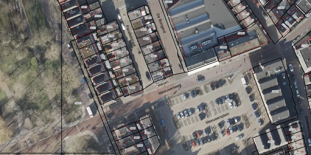Gebruik de zoekbalk of klik op een perceel voor informatie over de adressen binnen dit perceel.