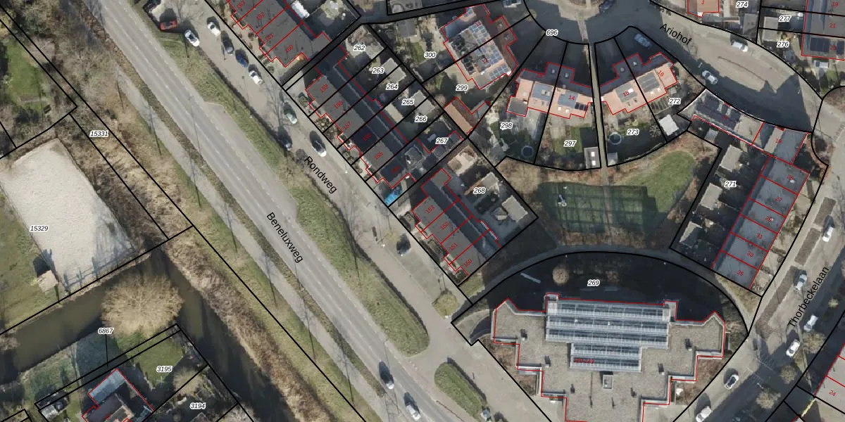 Het perceel waarop Rondweg 153 staat heeft een oppervlakte van 632 m². Dit is een groot perceel. De perceeloppervlakte wordt geregistreerd door het Kadaster. Gedetailleerde informatie over de maten van dit perceel kunt u vinden in het rapport Kadastrale kaart met maatvoering van Rondweg 153.