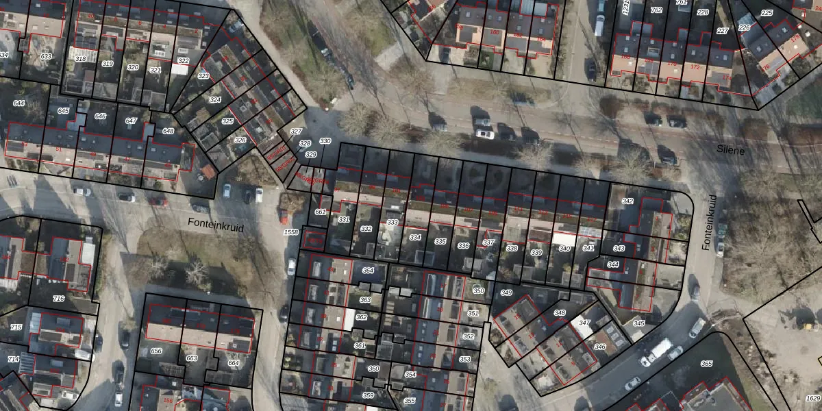 Het perceel waarop Silene 103 staat heeft een oppervlakte van 163 m². Dit is een middelgroot perceel. De perceeloppervlakte wordt geregistreerd door het Kadaster. Gedetailleerde informatie over de maten van dit perceel kunt u vinden in het rapport Kadastrale kaart met maatvoering van Silene 103.