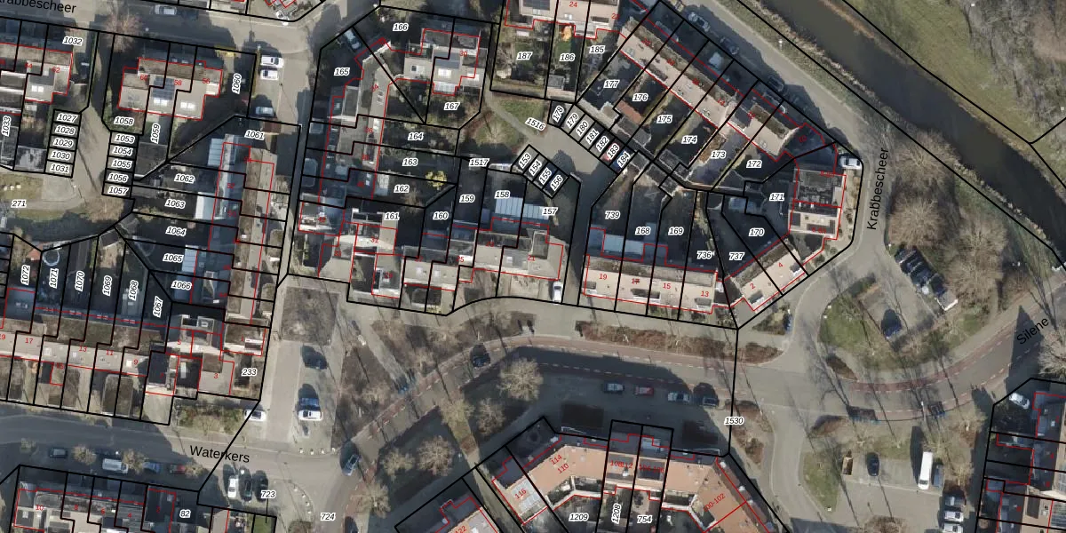 Gebruik de zoekbalk of klik op een perceel voor informatie over de adressen binnen dit perceel.
