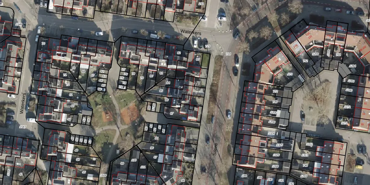 Gebruik de zoekbalk of klik op een perceel voor informatie over de adressen binnen dit perceel.