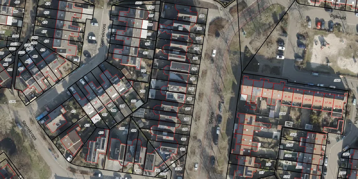Gebruik de zoekbalk of klik op een perceel voor informatie over de adressen binnen dit perceel.
