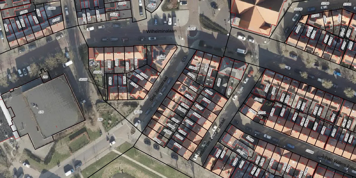 Het perceel waarop Sint Jorisstraat 13 staat heeft een oppervlakte van 84 m². Dit is een klein perceel. De perceeloppervlakte wordt geregistreerd door het Kadaster. Gedetailleerde informatie over de maten van dit perceel kunt u vinden in het rapport Kadastrale kaart met maatvoering van Sint Jorisstraat 13.