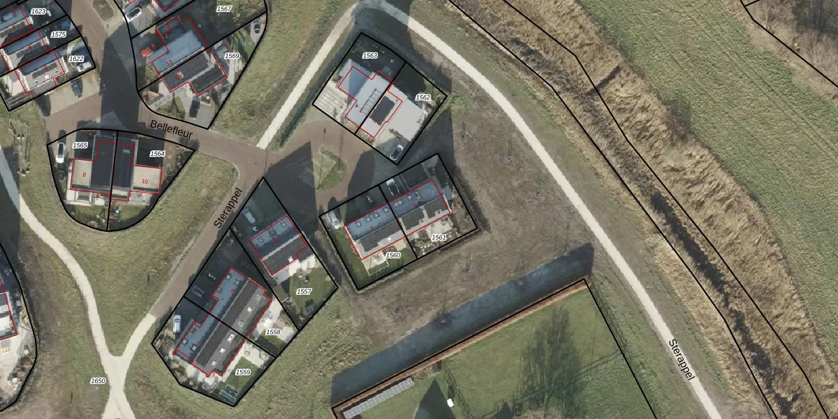 Het perceel waarop Sterappel 3 staat heeft een oppervlakte van 323 m². Dit is een groot perceel. De perceeloppervlakte wordt geregistreerd door het Kadaster. Gedetailleerde informatie over de maten van dit perceel kunt u vinden in het rapport Kadastrale kaart met maatvoering van Sterappel 3.