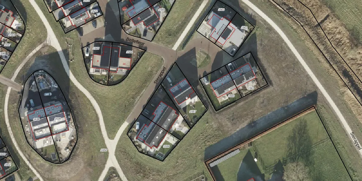 Gebruik de zoekbalk of klik op een perceel voor informatie over de adressen binnen dit perceel.