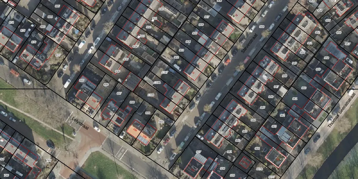 Het perceel waarop Stevinstraat 25 staat heeft een oppervlakte van 253 m². Dit is een middelgroot perceel. De perceeloppervlakte wordt geregistreerd door het Kadaster. Gedetailleerde informatie over de maten van dit perceel kunt u vinden in het rapport Kadastrale kaart met maatvoering van Stevinstraat 25.