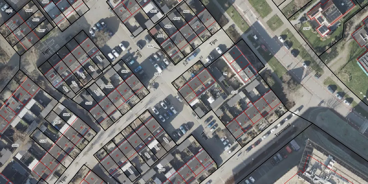 Het perceel waarop Tijm 1 staat heeft een oppervlakte van 1834 m². Dit is een zeer groot perceel. De perceeloppervlakte wordt geregistreerd door het Kadaster. Gedetailleerde informatie over de maten van dit perceel kunt u vinden in het rapport Kadastrale kaart met maatvoering van Tijm 1.