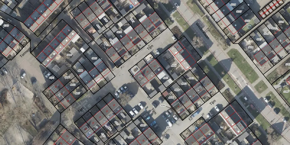 Het perceel waarop Tijm 10 staat heeft een oppervlakte van 993 m². Dit is een groot perceel. De perceeloppervlakte wordt geregistreerd door het Kadaster. Gedetailleerde informatie over de maten van dit perceel kunt u vinden in het rapport Kadastrale kaart met maatvoering van Tijm 10.