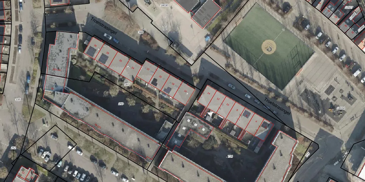 Het perceel waarop Troelstrasingel 16 staat heeft een oppervlakte van 1857 m². Dit is een zeer groot perceel. De perceeloppervlakte wordt geregistreerd door het Kadaster. Gedetailleerde informatie over de maten van dit perceel kunt u vinden in het rapport Kadastrale kaart met maatvoering van Troelstrasingel 16.