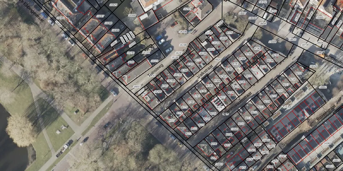Gebruik de zoekbalk of klik op een perceel voor informatie over de adressen binnen dit perceel.
