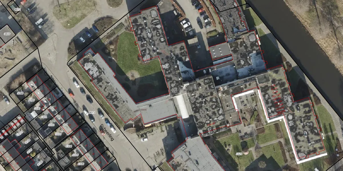 Het perceel waarop Vijverhof 50 staat heeft een oppervlakte van 1,4 ha. Dit is een zeer groot perceel. De perceeloppervlakte wordt geregistreerd door het Kadaster. Gedetailleerde informatie over de maten van dit perceel kunt u vinden in het rapport Kadastrale kaart met maatvoering van Vijverhof 50.
