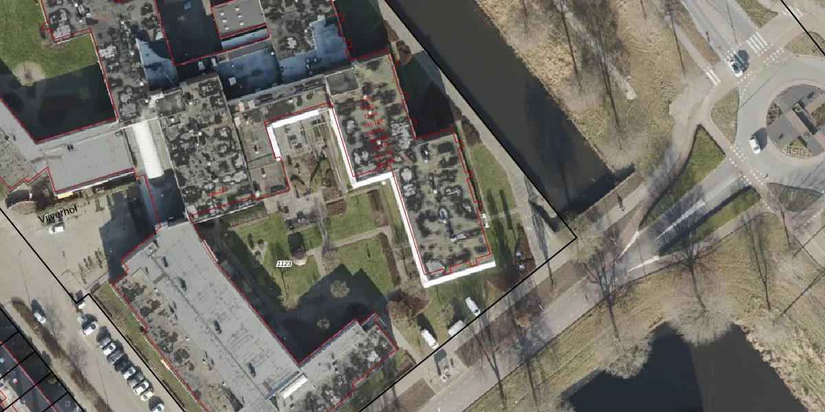 Het perceel waarop Vijverhof 84 staat heeft een oppervlakte van 1,4 ha. Dit is een zeer groot perceel. De perceeloppervlakte wordt geregistreerd door het Kadaster. Gedetailleerde informatie over de maten van dit perceel kunt u vinden in het rapport Kadastrale kaart met maatvoering van Vijverhof 84.