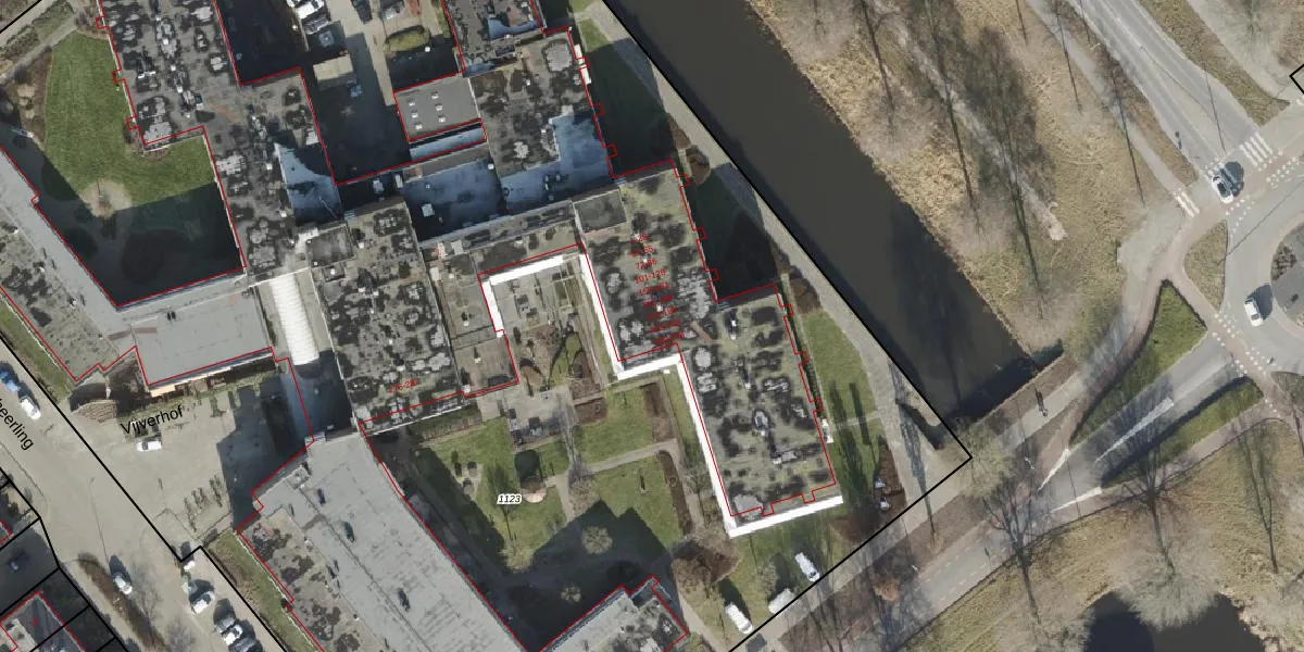 Het perceel waarop Vijverhof 86 staat heeft een oppervlakte van 1,4 ha. Dit is een zeer groot perceel. De perceeloppervlakte wordt geregistreerd door het Kadaster. Gedetailleerde informatie over de maten van dit perceel kunt u vinden in het rapport Kadastrale kaart met maatvoering van Vijverhof 86.