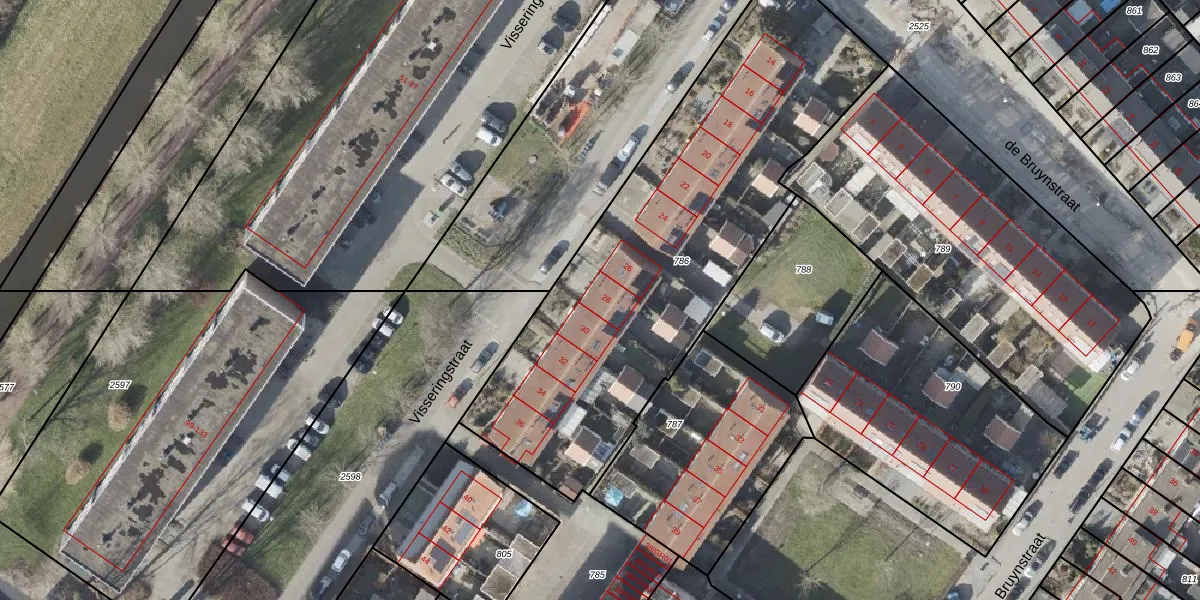 Het perceel waarop Visseringstraat 28 staat heeft een oppervlakte van 2195 m². Dit is een zeer groot perceel. De perceeloppervlakte wordt geregistreerd door het Kadaster. Gedetailleerde informatie over de maten van dit perceel kunt u vinden in het rapport Kadastrale kaart met maatvoering van Visseringstraat 28.